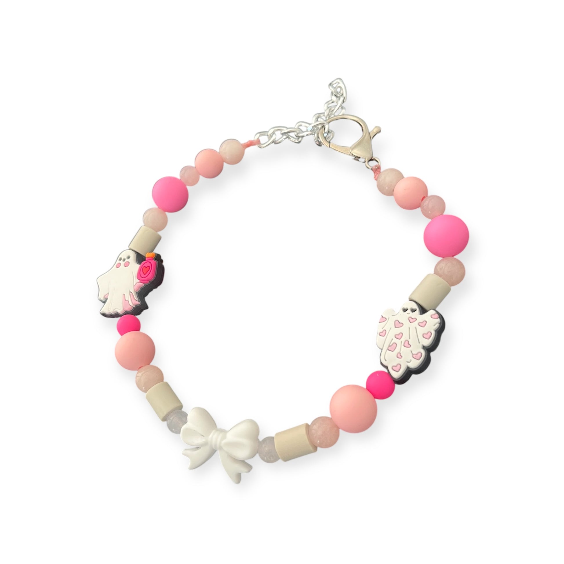 Für diese Kette wurden Quarzsteinperlen & Rosenquarz eingearbeitet.
