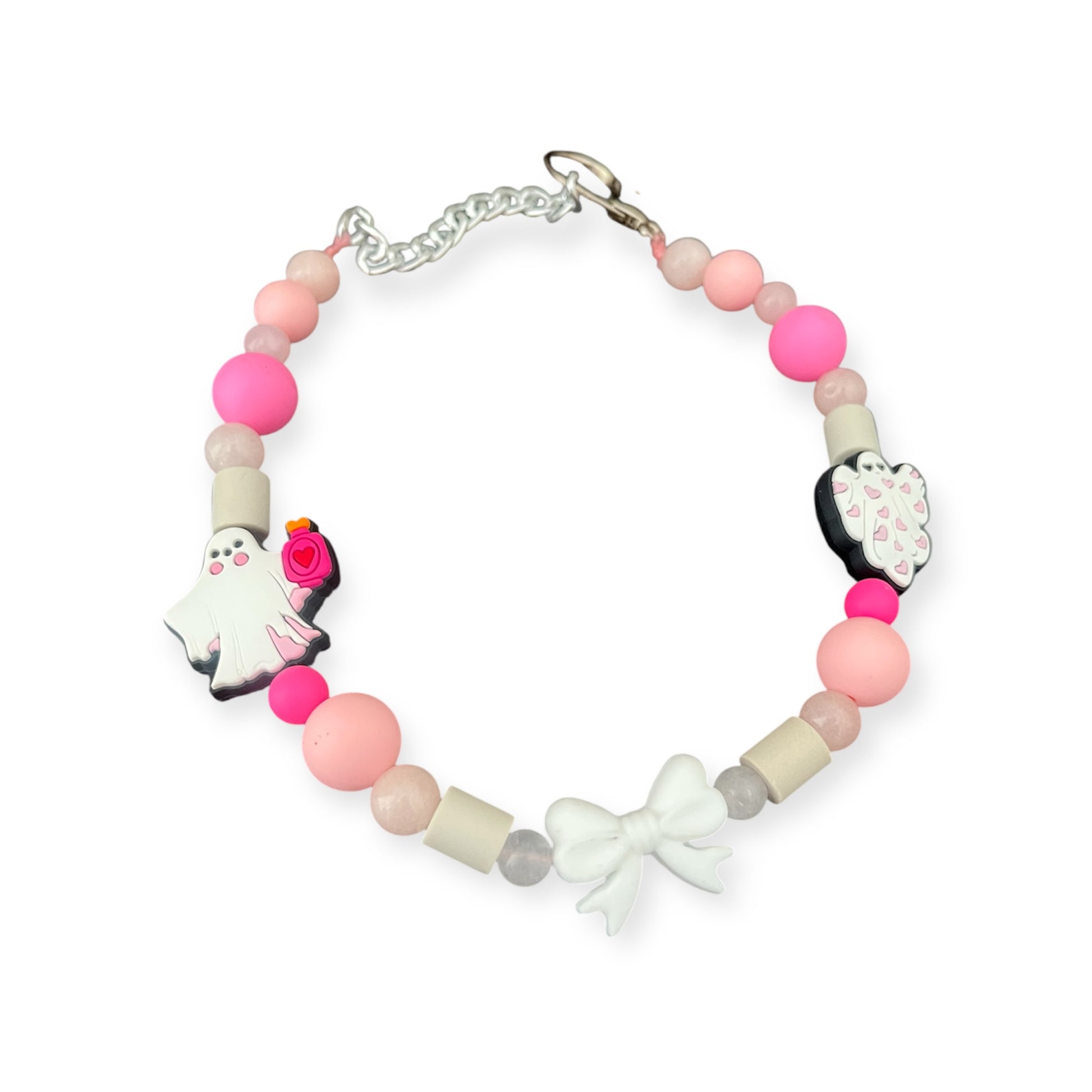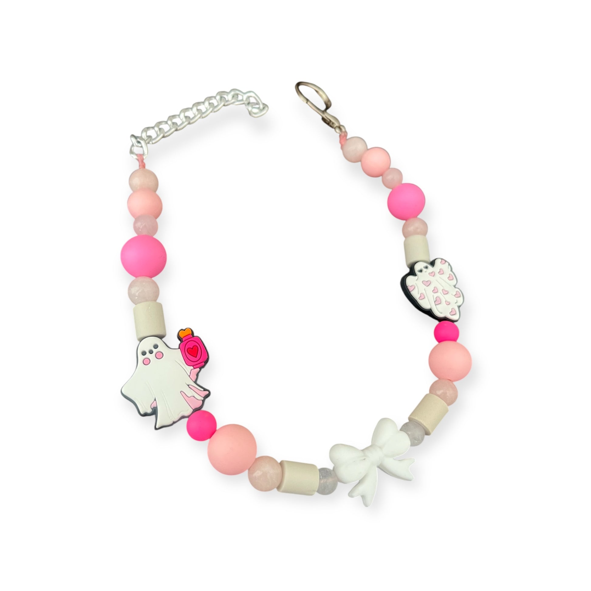 Das Zeckenhalsband ist aus Heilsteinen, Silikonperlen und EM Keramik Perlen.